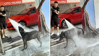 Sıcaktan bunalan köpek, iki saatte bir oto yıkamacıda kendini yıkatıyor!